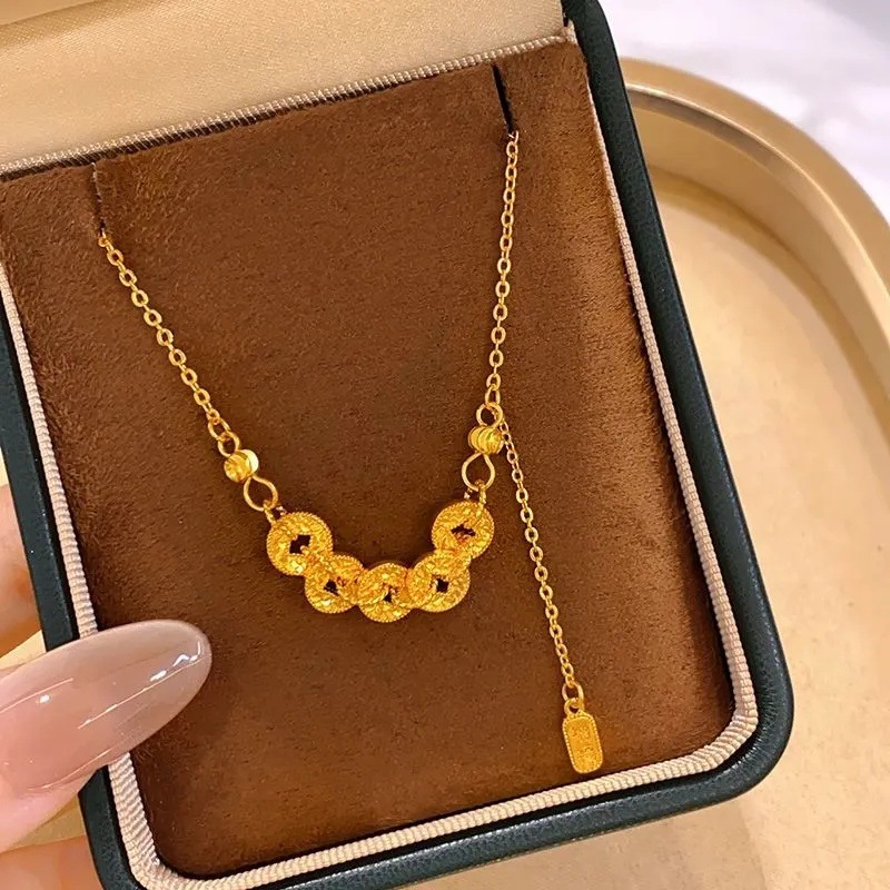 Chinese Trendy Five Emperors Coin Crushed Ice Fortune Necklace, Same Style as in Gold Stores, Light Luxury Versatile High-End Choker for Girls