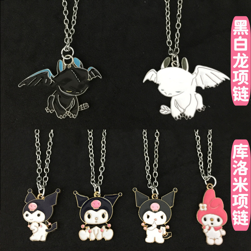 Melody Culomi Necklace Alloy Oil Drop Night Fury Black and White Dragon Girl Couple Cool Best Friend Cartoon Cute Necklace