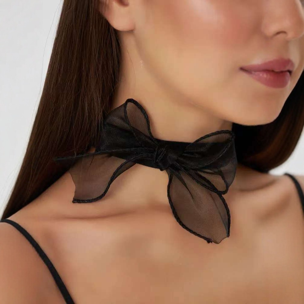 Choker Silk Bow Collar Collar Chain Neck Belt Soft Cute Necklace Female Soft Girl Collar Neck Ring Girl Japanese Series