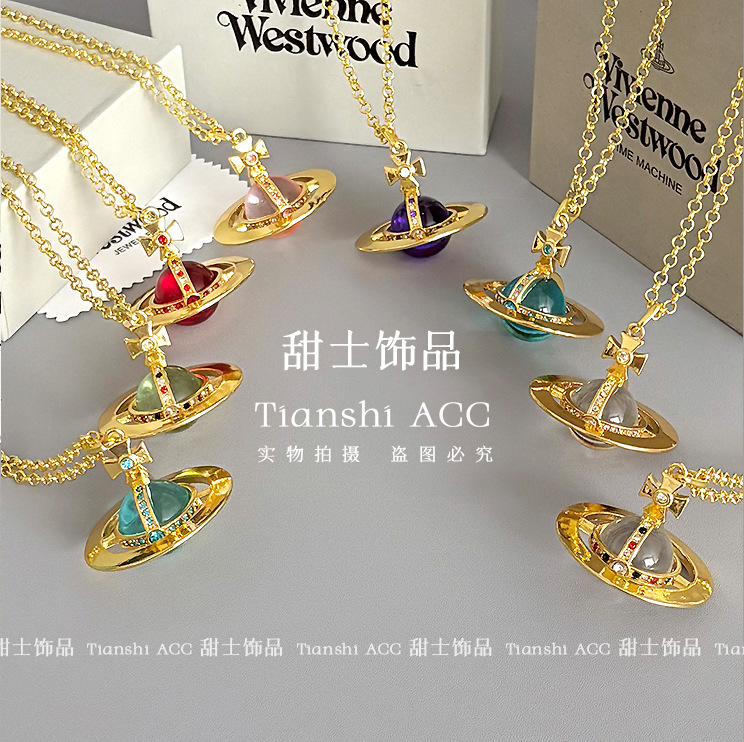 Magical Girl Saturn Series Golden Large 20mm Glass Three-Dimensional Color Beads with Label Saturn Niche High-End Necklace