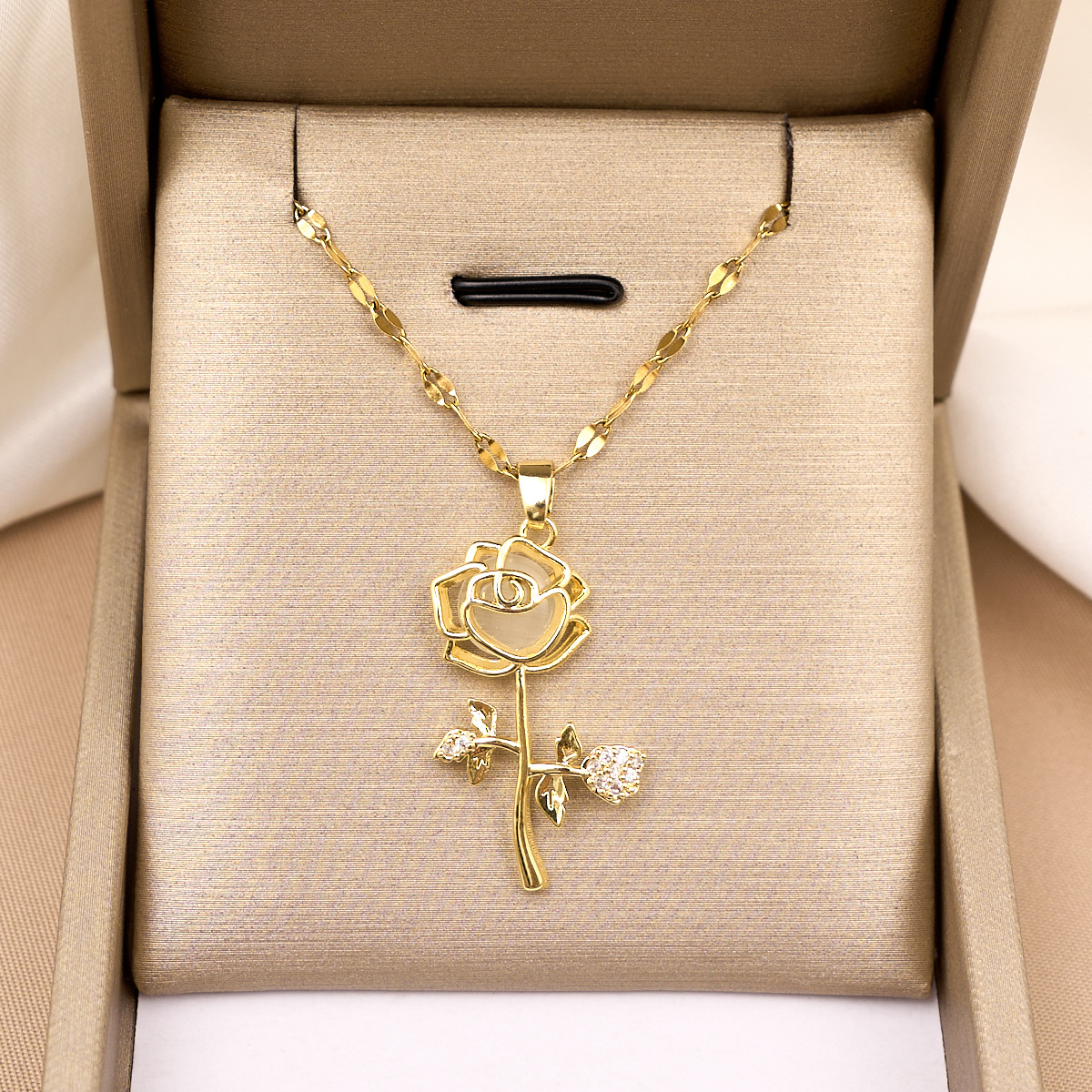 [Titanium Steel] Romantic Rose Light Luxury Elegant Gorgeous Diamond Necklace Women's All-match Clavicle Chain Titanium Steel Chain