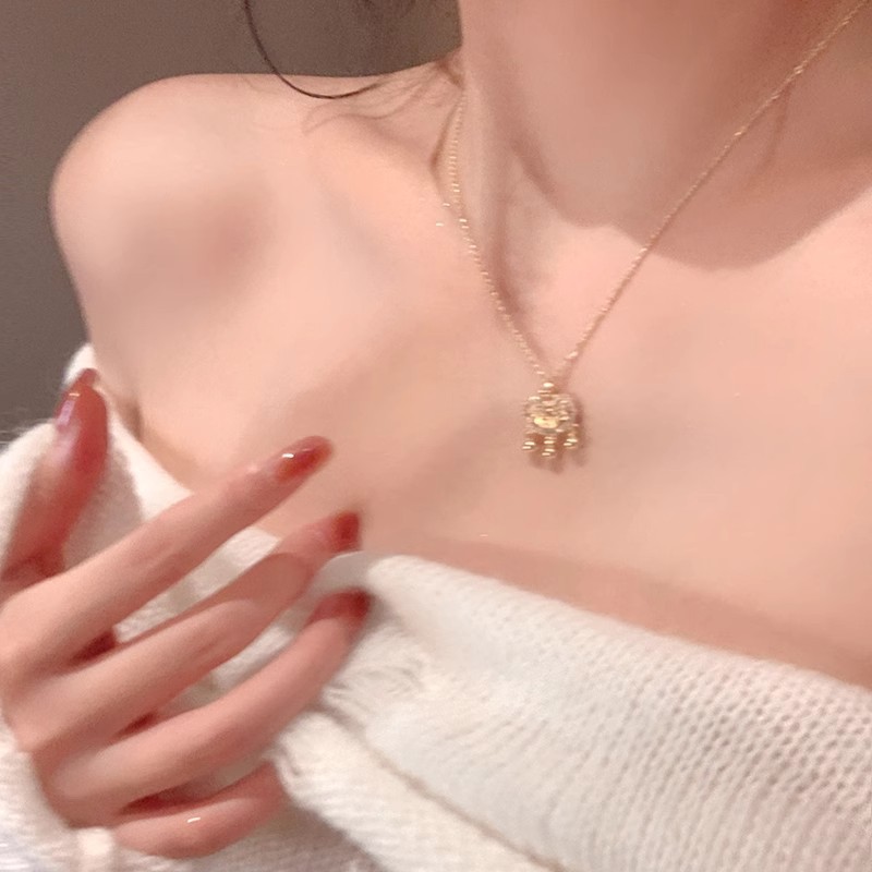 [No.4 Necklace] Bow Water Drop Pendant Girl Love Necklace Niche Joker Ruyi Lock Necklace