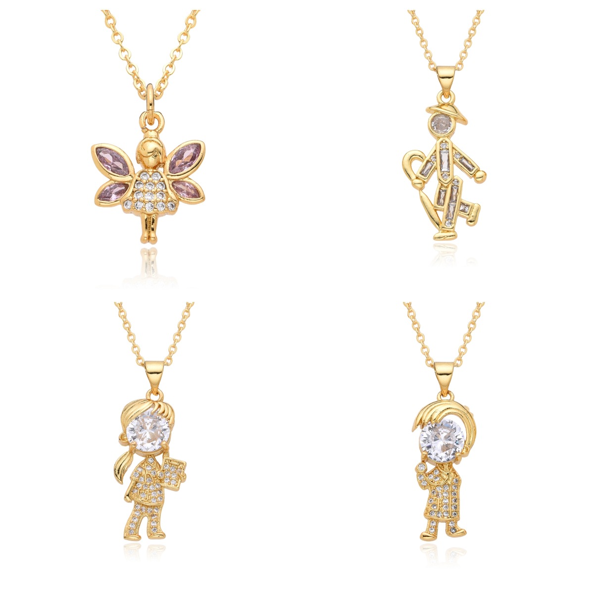 Niche design couple necklace zircon Angel little boy girl pendant clavicle chain birthday gift for girlfriend