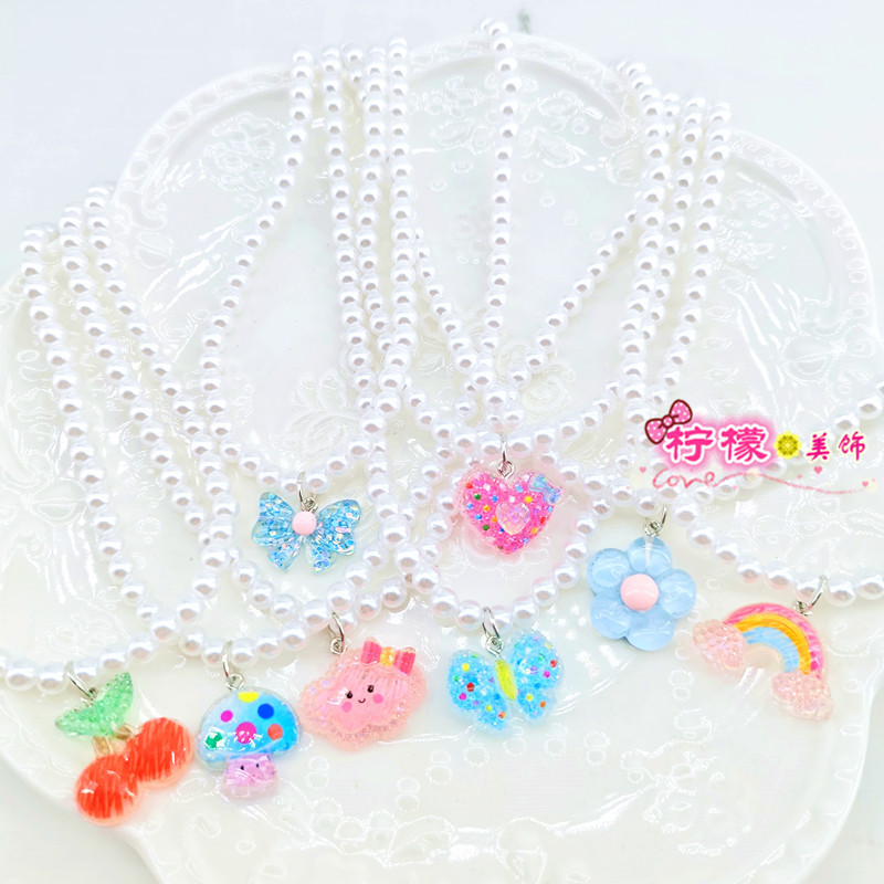 Flower candy color cute children's pearl necklace Princess jewelry colorful beaded cartoon pendant girls gift new