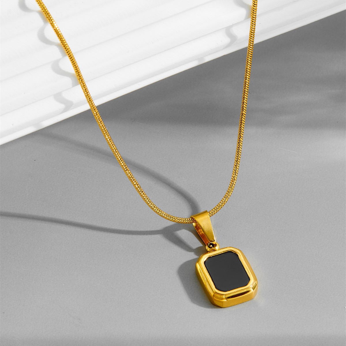 Cross-border square black shell pendant simple niche 18k titanium steel necklace girls temperament