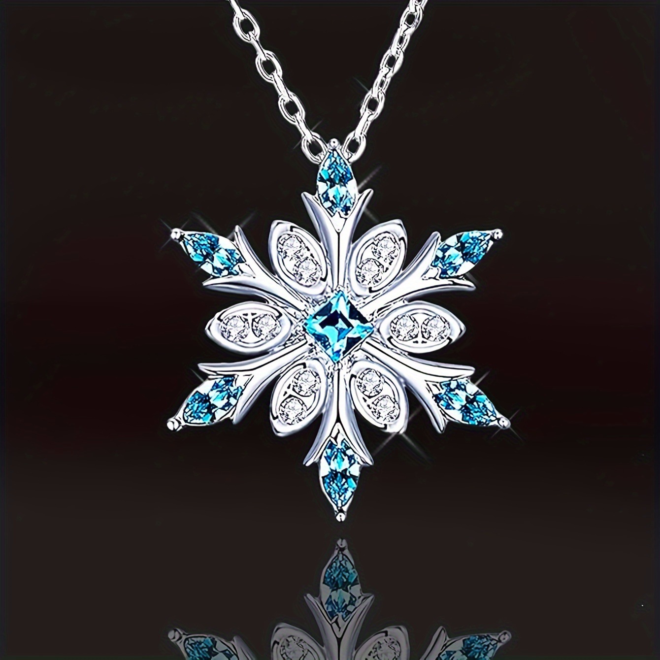 New Blue Princess Snowflake Necklace Crystal Gemstone Jewelry Girl Gift Box Gift Versatile Design Necklace