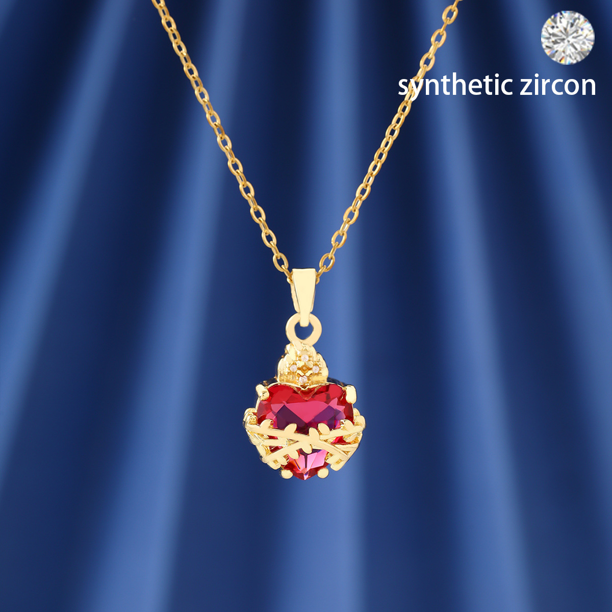 European and American Red Heart-Shaped Intertwined Zircon Pendant Necklace Retro Women's Peach Heart Necklace Cross-Border Wholesale