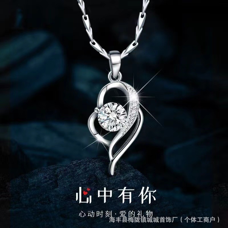 Aliexpress Silver Plated Soft Pendant Necklace Girls New Korean Style Necklace Heart-Shaped Pendant Factory Wholesale