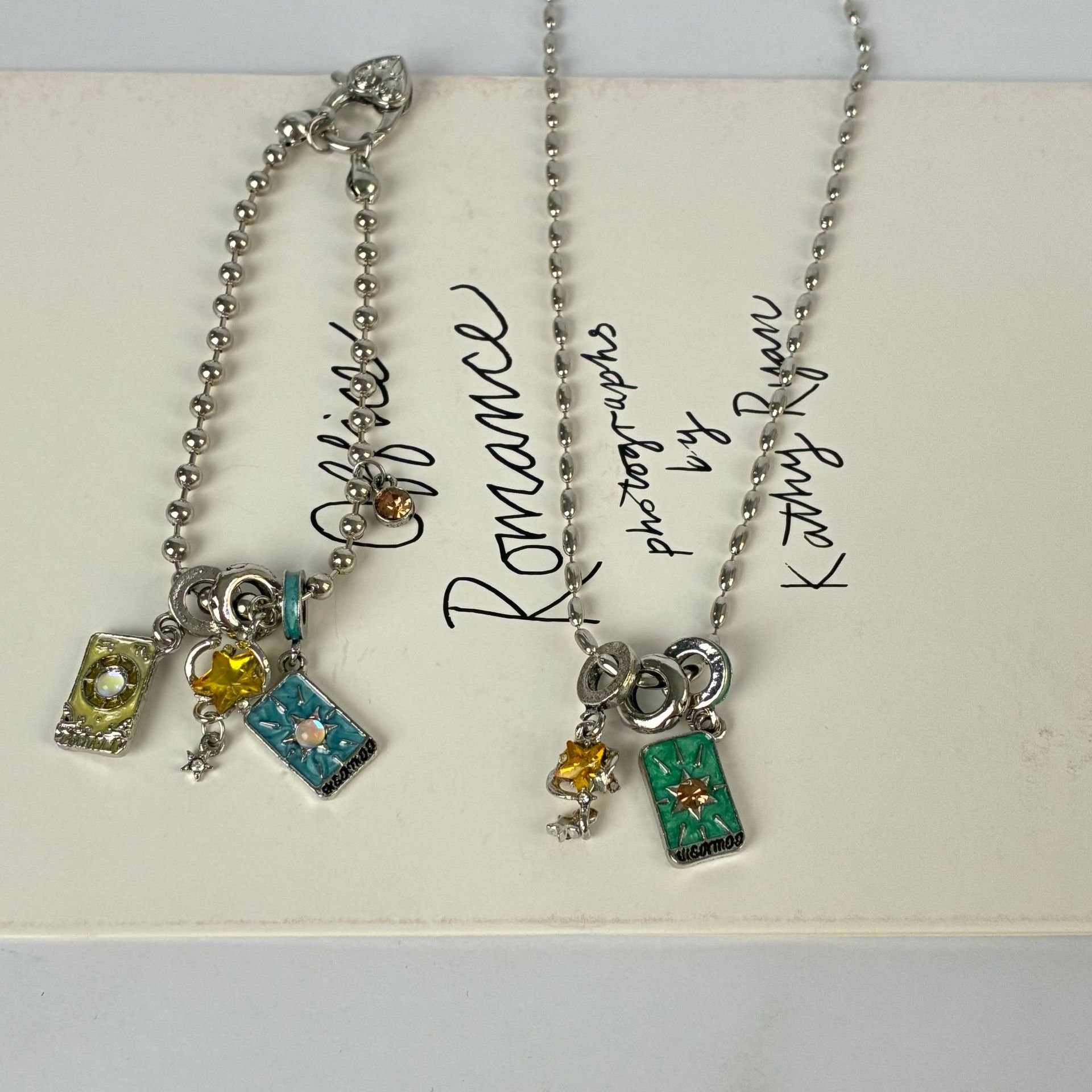 Retro Tarot Card Fine Glitter Drip Glaze Star Pendant Clavicle Chain Bracelet Y2K Sweet and Cool Girl New Popular Accessories