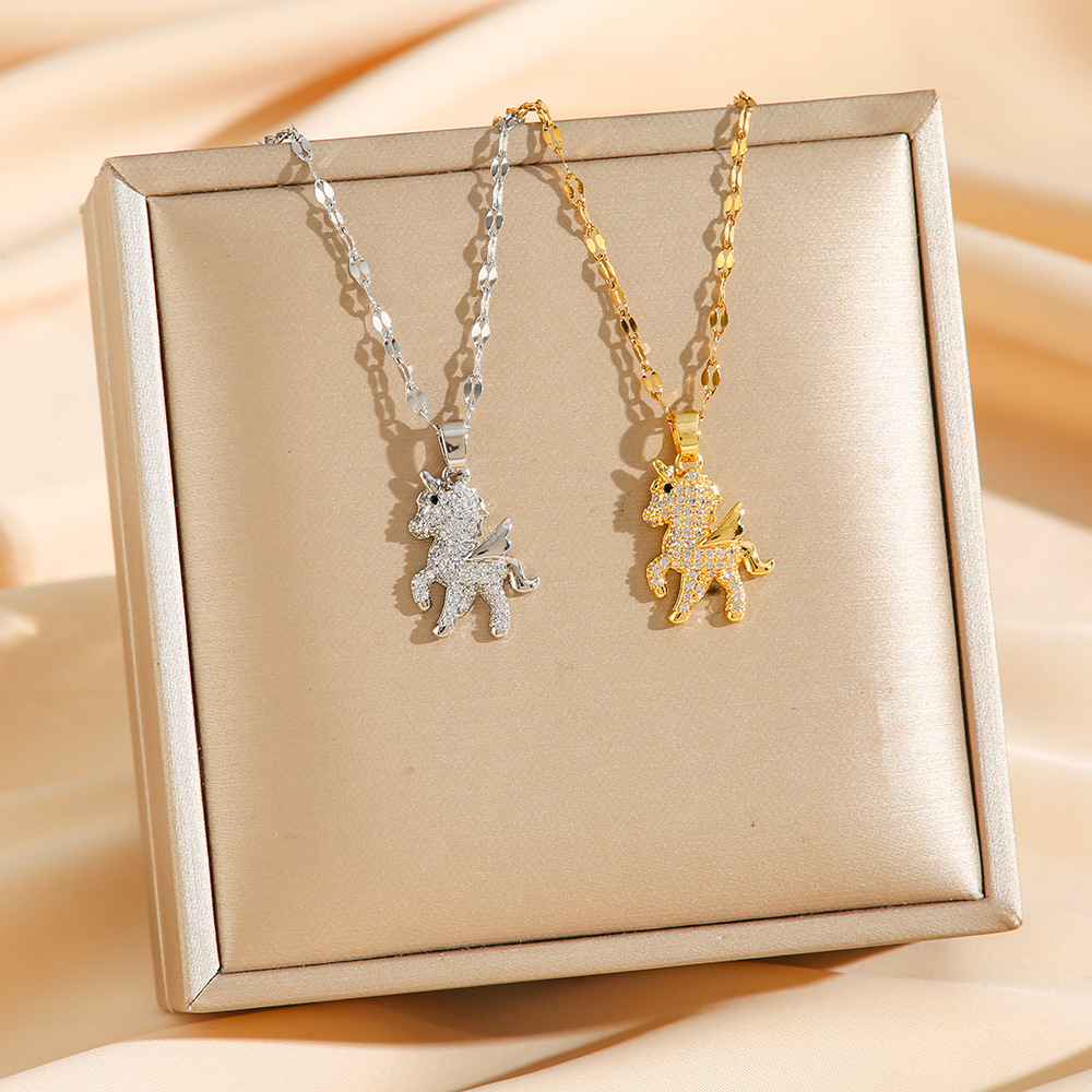 Fairy Style Fashion Cute Small Unicorn Necklace Women's Gold New Arrival Diamond-encrusted Animal Clavicle Chain Pegasus