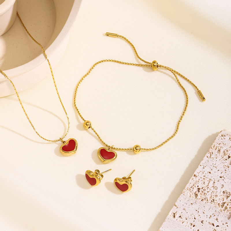 Red Love Titanium Steel Necklace Small Red Heart Pendant Korean Niche Sweet Autumn and Winter Vigilant Girl Peach Heart Clavicle Chain