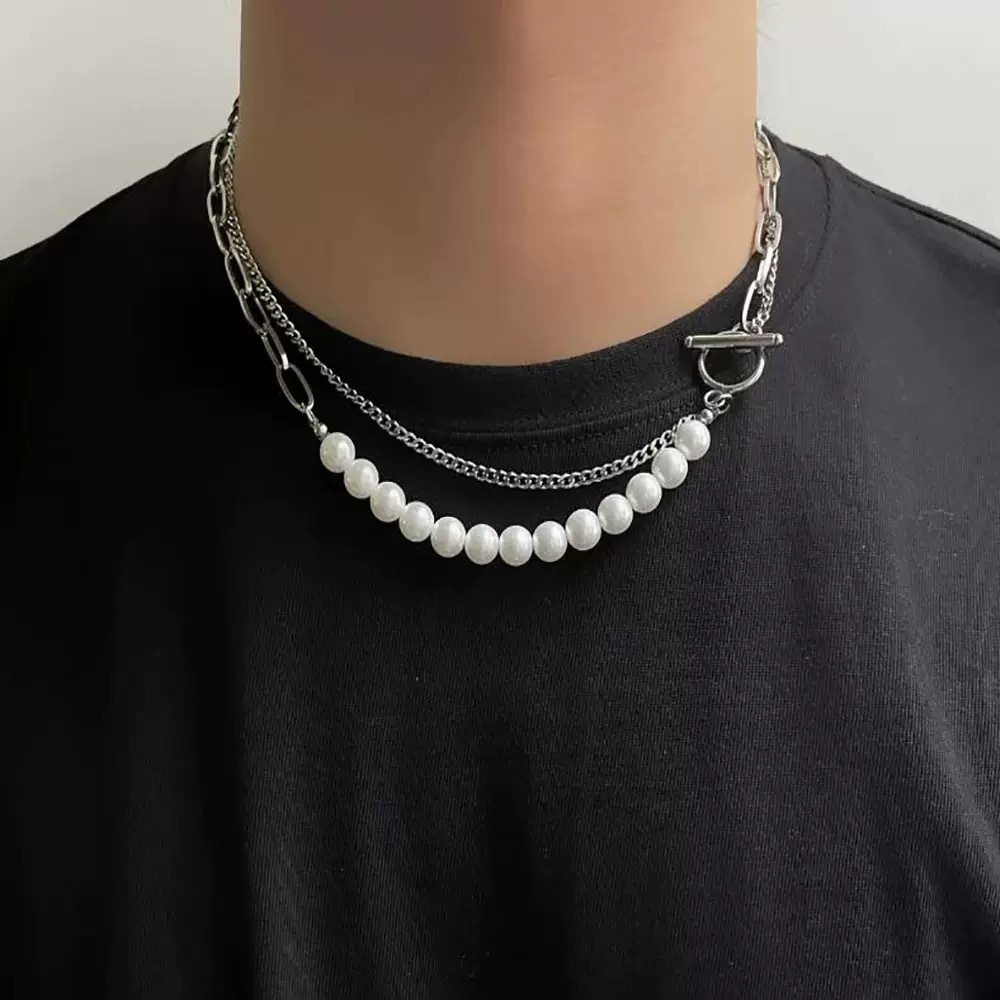 Designed Double-Layer Pearl Splicing Beaded Necklace for Girls New Ot Buckle Clavicle Chain for Men Niche Neutral Style Necklace