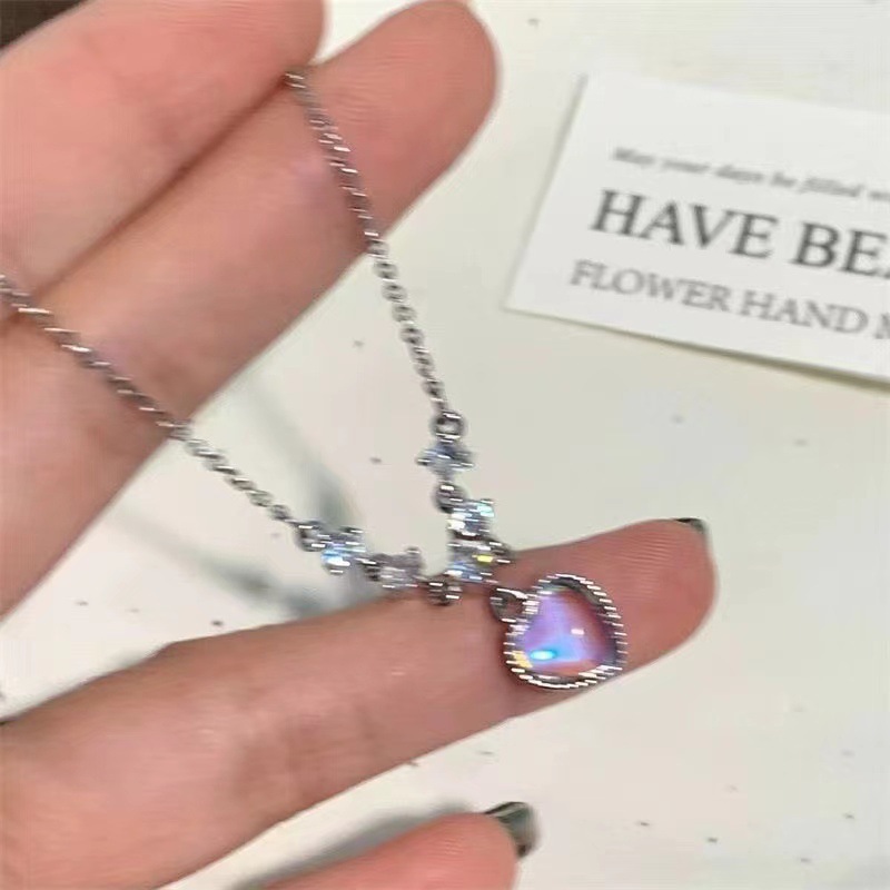 Popular Zircon Moonlight Love Necklace for Women, Light Luxury, Sweet Summer Girl Heart Clavicle Chain, Versatile and Fashionable