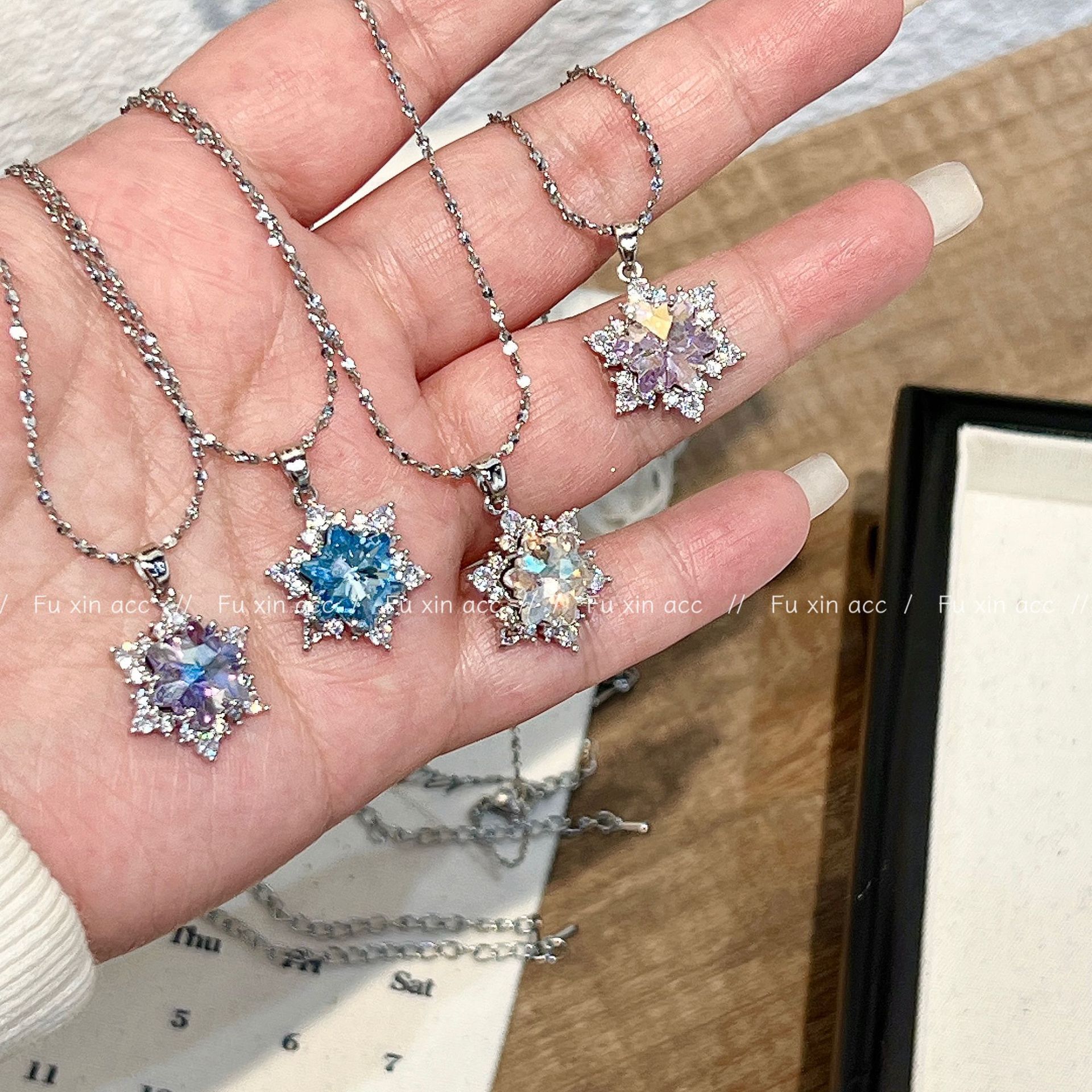 Frozen Four-Color Snowflake Necklace for Girls, Accessible Luxury and Unique Crystal Pendant Clavicle Chain, High-End and Versatile Necklace
