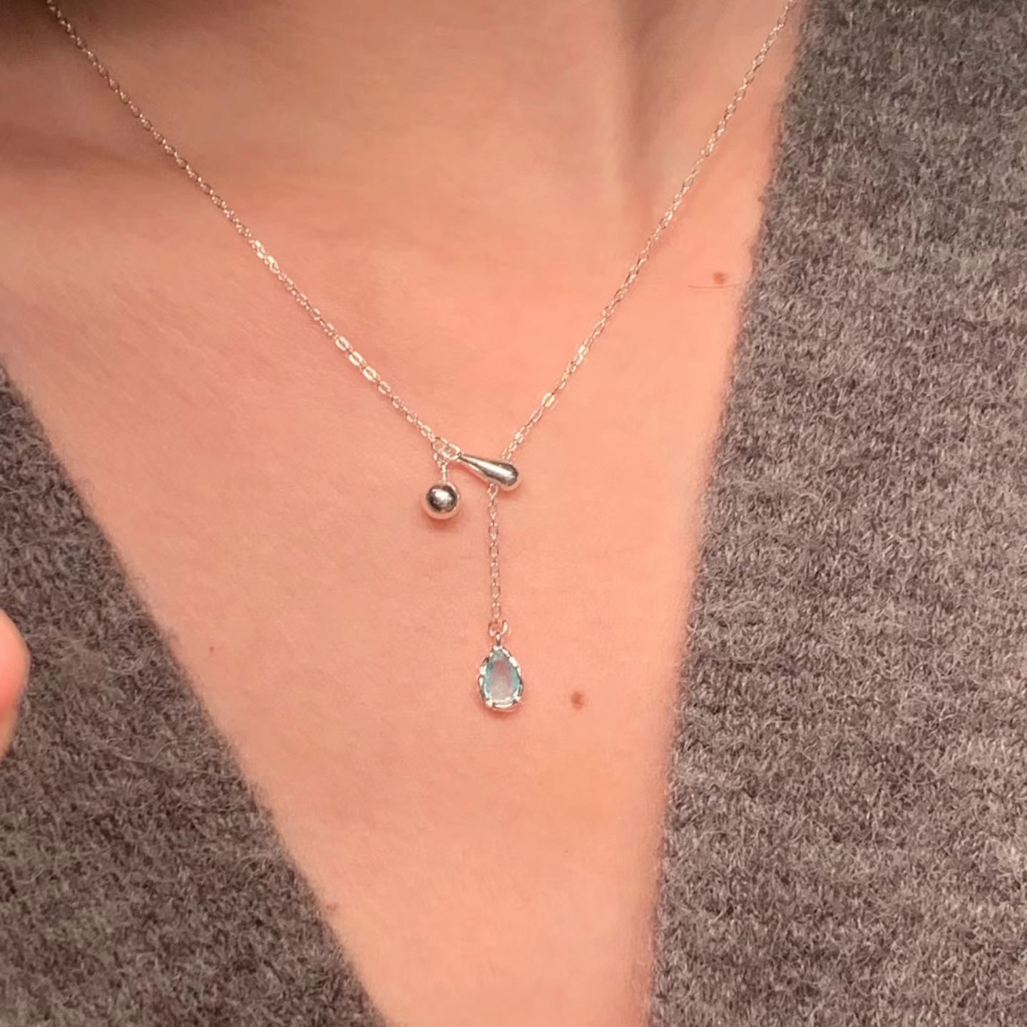 Cool Temperament Simple Mermaid Tears Blue Water Drop Necklace Women's New Chinese Style All-match Girly Adjustable Clavicle Chain