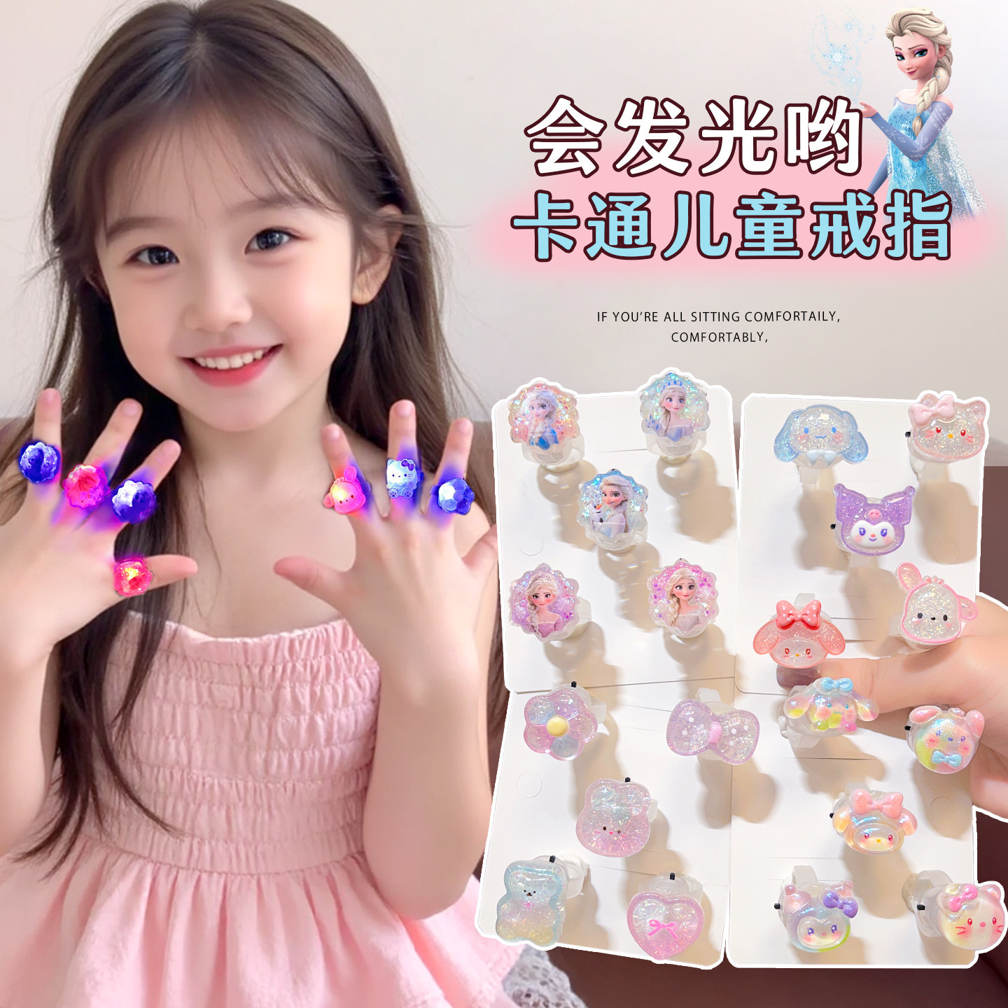 Children's Gemstone Ring Girl Princess Imitation Diamond Crystal Toy Gift Box Kindergarten Gift Cartoon Girls Jewelry