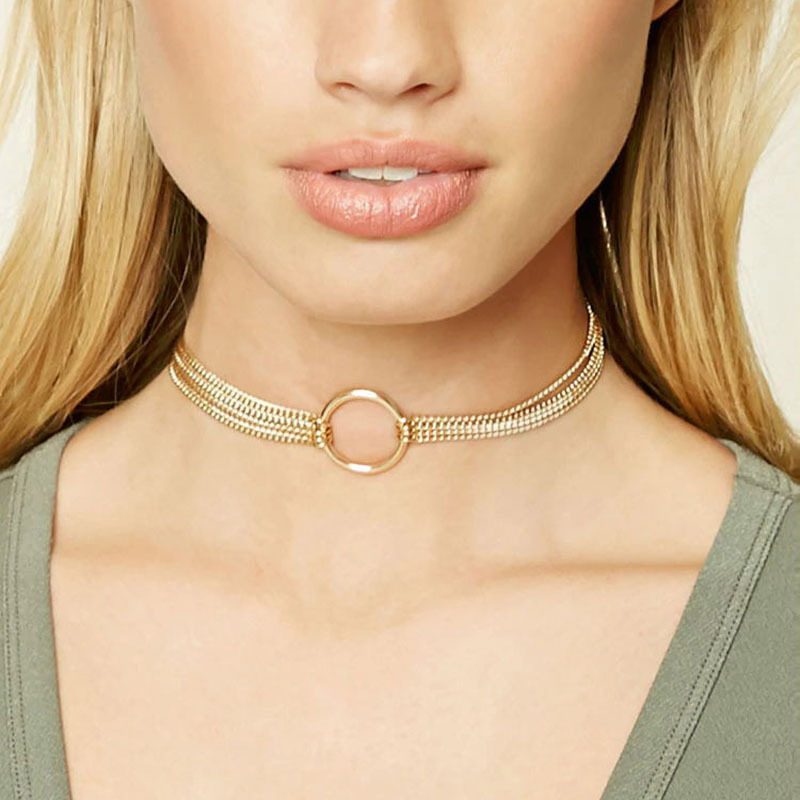 European and American Cross-Border Jewelry Simple Three-Layer Disc Clavicle Chain Necklace for Girls Fashion Versatile O-Shaped Chain Necklace Wholesale