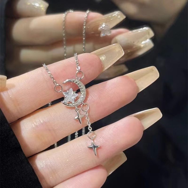 Star and Moon Romantic Necklace for Girls, Light Luxury, High-End, Exquisite Niche Design, Star and Moon Tassel, Versatile Clavicle Chain