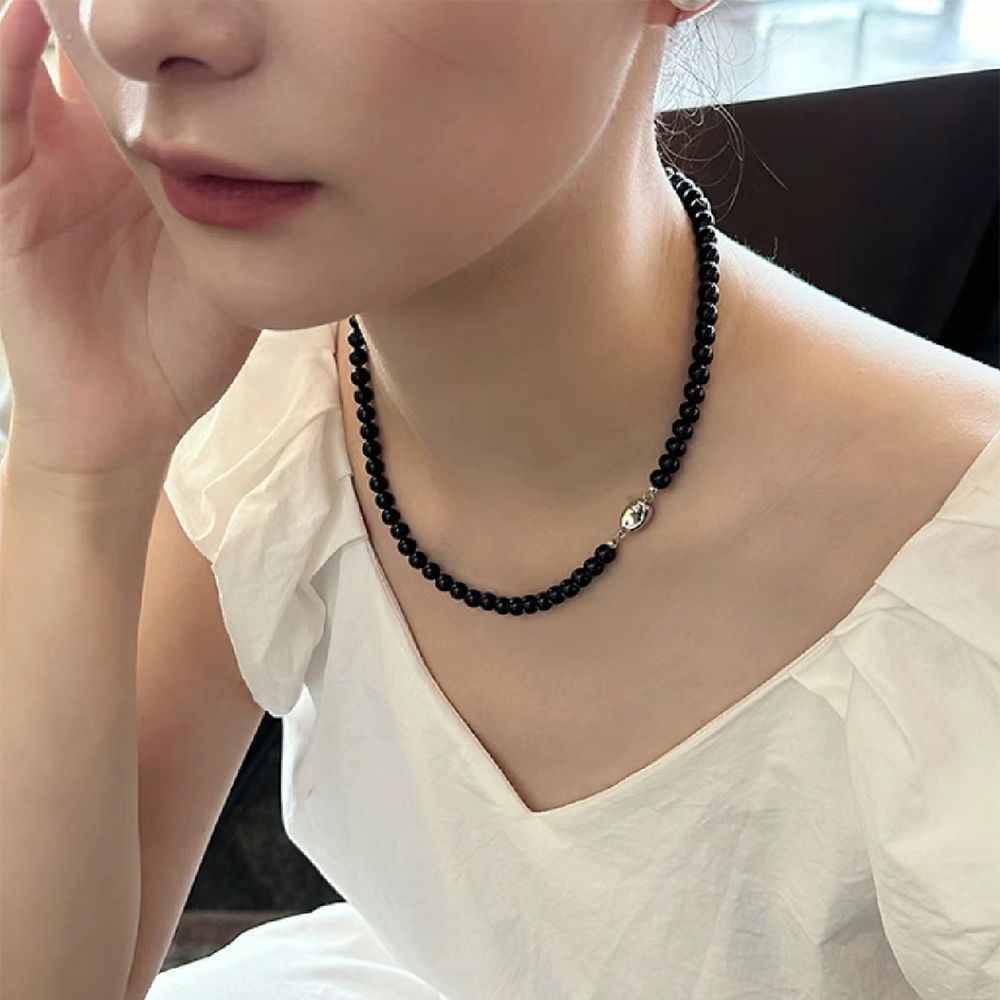Non-Fading 925 Ingot Buckle Handmade Beaded Agate Necklace for Girls, Accessible Luxury, Fashionable and Versatile Neck Chain, Clavicle Chain