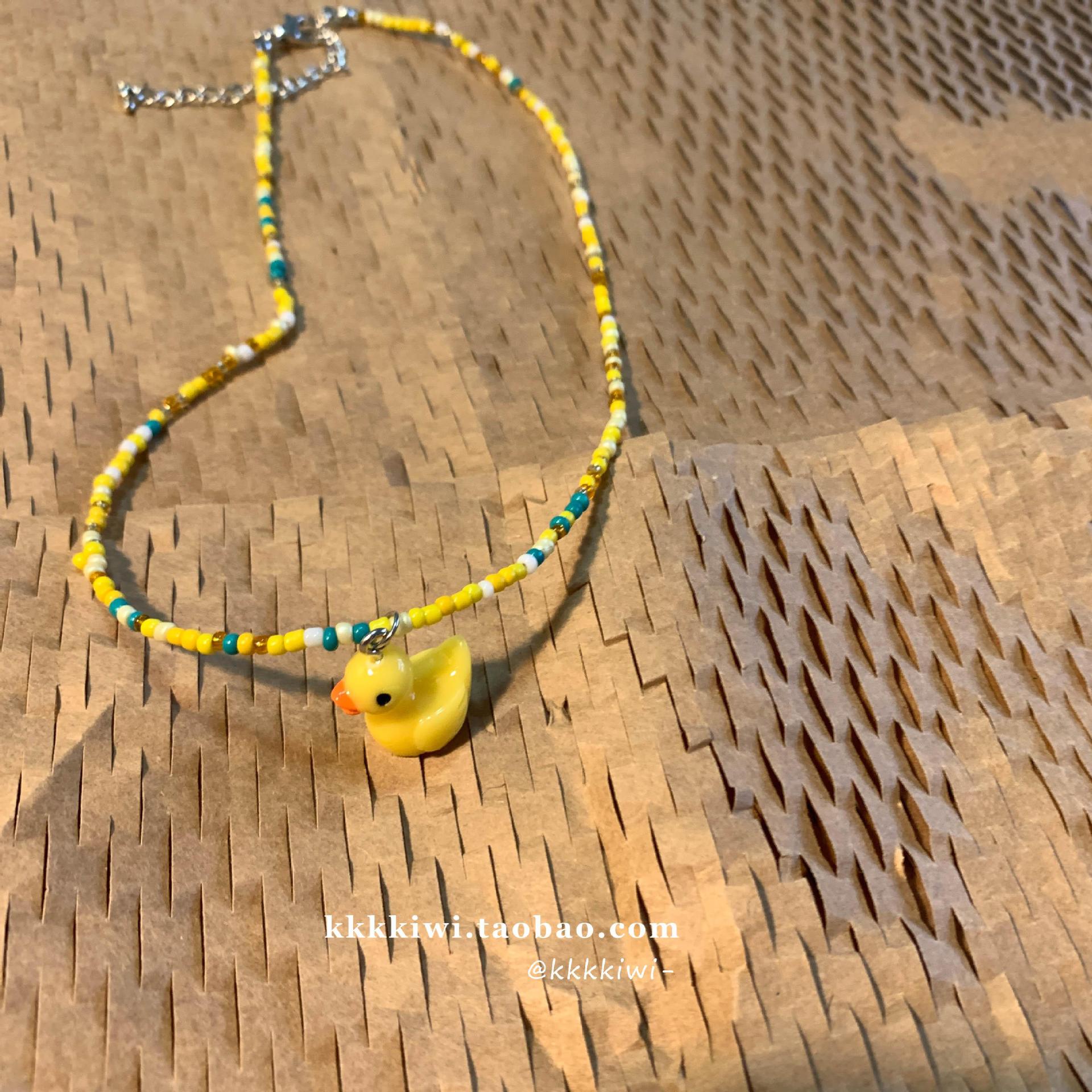 Yellow Duck Colorful Beaded Necklace Korean ins Cute Girl's Collarbone Chain Necklace