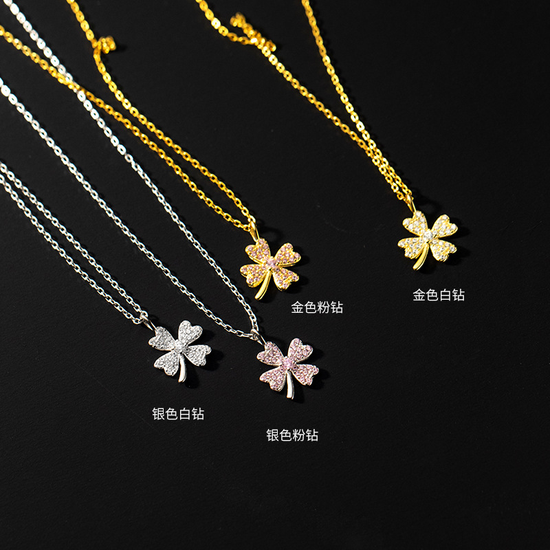 Eloch s925 Silver Mori Diamond Flower Necklace Summer Japanese Korean Women's Four-petal Flower Clavicle Chain D8379