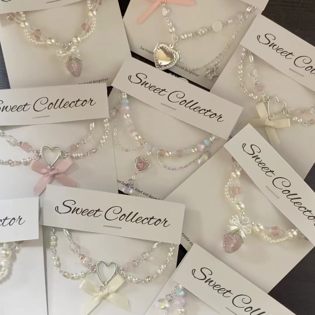 Sweet Love Bow Pearl Necklace Korean Style Fresh Style Clavicle Chain Girl's Heart Fashion Necklace Necklace