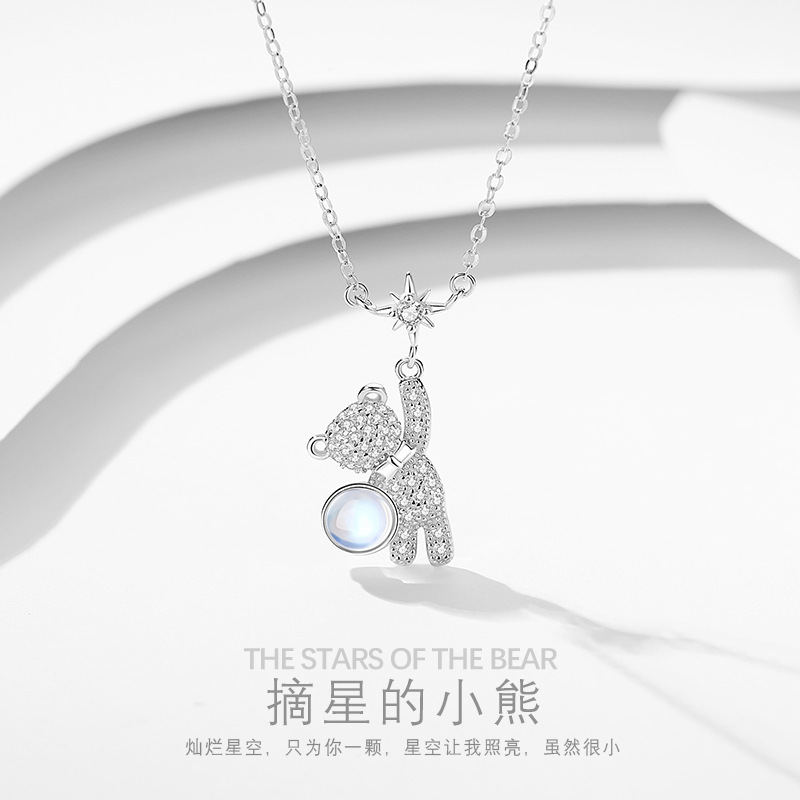 Star picking bear astronaut necklace girls light luxury niche design sweet cool style new clavicle chain