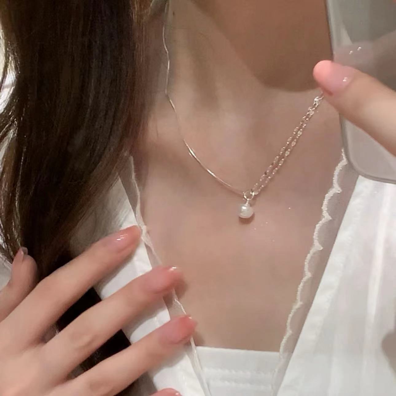 Asymmetric Chain Pearl Necklace Girls Korean Style Stitching Chain Distinctive Niche Design Simple All-match Clavicle Chain