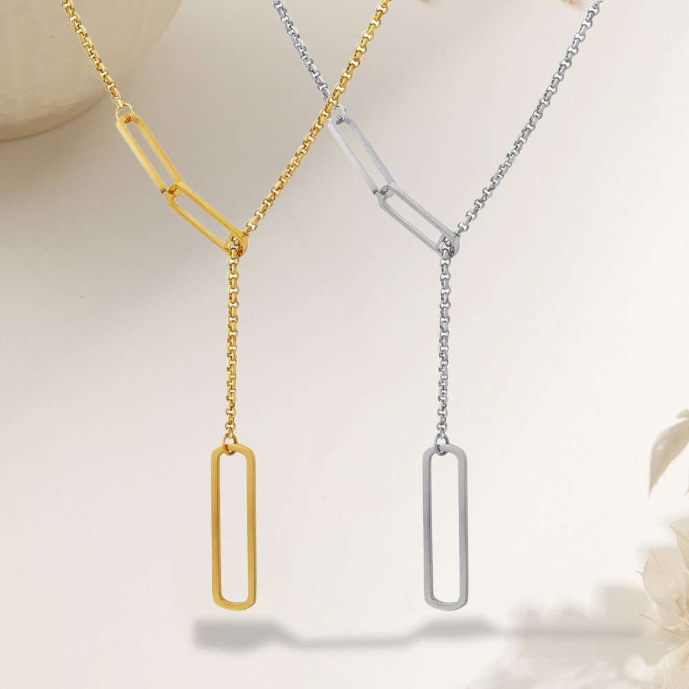 Minimalist Geometric Angular Rectangular Sweater Chain Necklace Long Versatile Titanium Steel Women's Jewelry Trendy