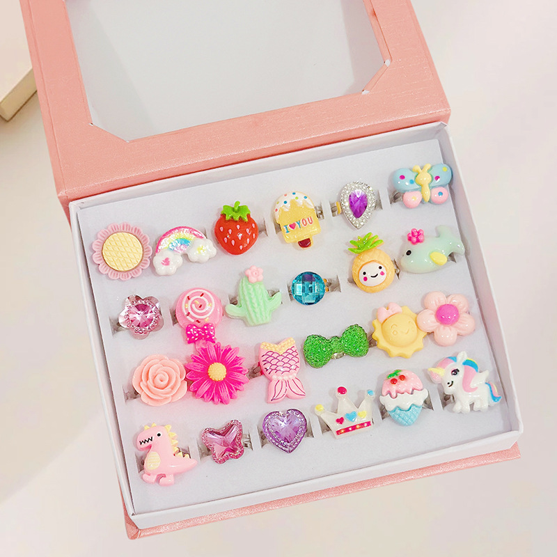 New Cute Girls Cartoon Princess 24 Pack Ring Plastic Ring Dress Up Children's Ring Gift Box Wholesale