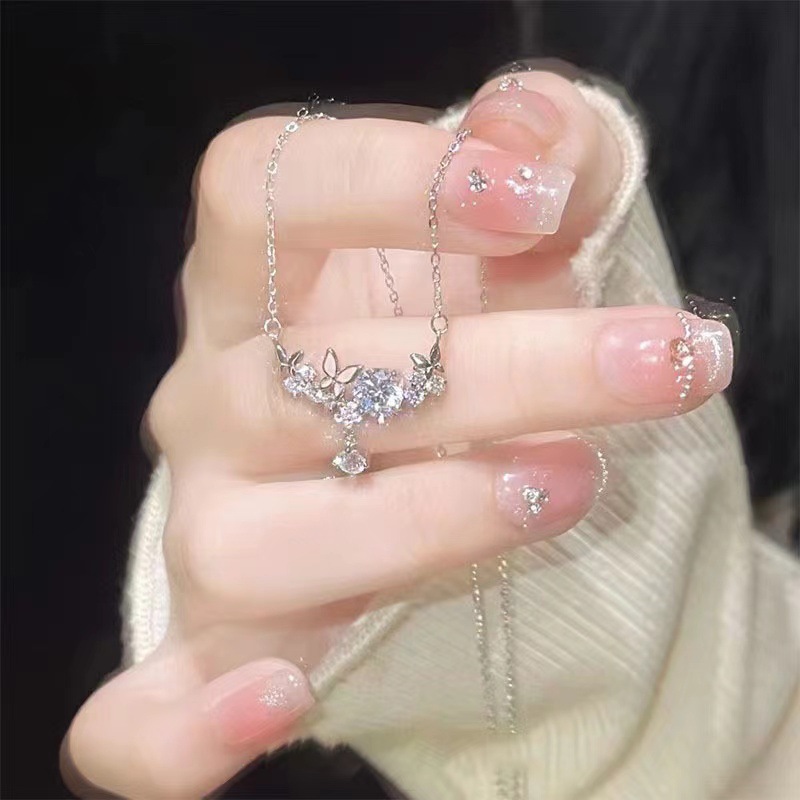 Butterfly Zircon Water Drop Necklace for Girls, Fairy-Like, Fashionable, Light Luxury, Niche Design, High-End, Versatile Clavicle Chain