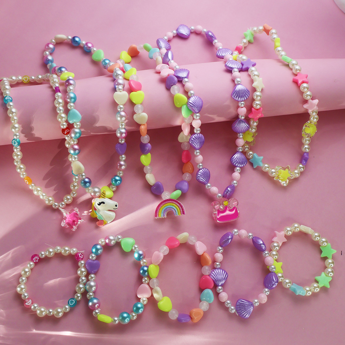 Cross-border hot selling children's jewelry colorful butterfly unicorn mermaid girls' necklace bracelet suit in stock wholesale