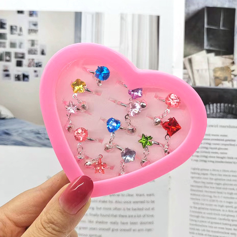 New children's ring 12 love boxed rhinestone bracelet girl toy ring foreign trade supply rhinestone meson