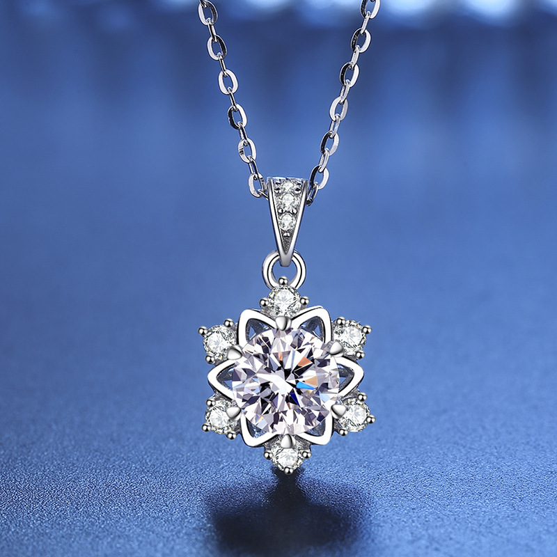 S925 Silver Christmas Jewelry Hollow Snowflake Moissanite Pendant Necklace Accessories for Women Niche Fashion Clavicle Jewelry