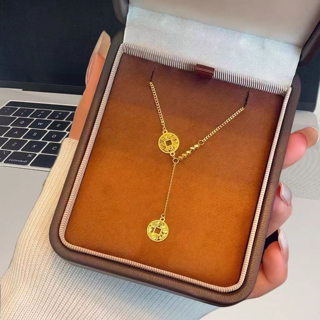 S925 Sterling Silver Crushed Ice Tassel Necklace for Girls, Money Coin, Light Luxury, High-End, Transfer Bead Clavicle Necklace