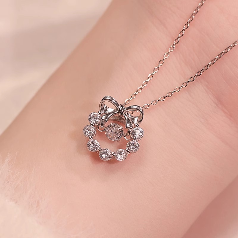 Bow Tie Sweet Necklace for Girls, Light Luxury Niche Clavicle Chain, Temperament Zircon Stainless Steel Necklace, Smart Pendant