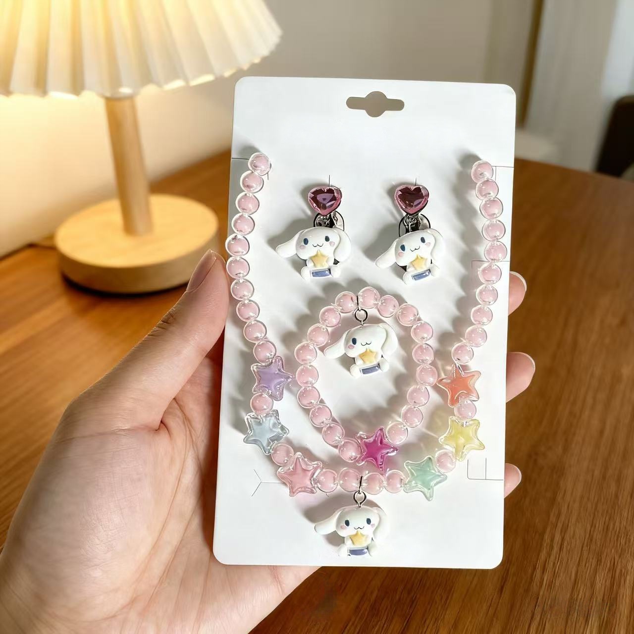 Cross-Border New Children's Necklace Jewelry Set Colorful Beaded Jewelry Bracelet Cartoon Ear Clips Princess Girls