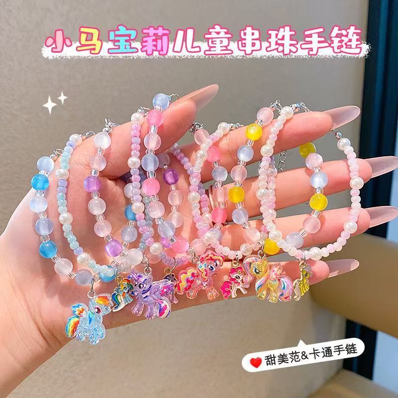 Cute Pony Baby Bracelet Children Girls Beaded Bracelet Pendant Bracelet Girls Cartoon Accessories Jewelry