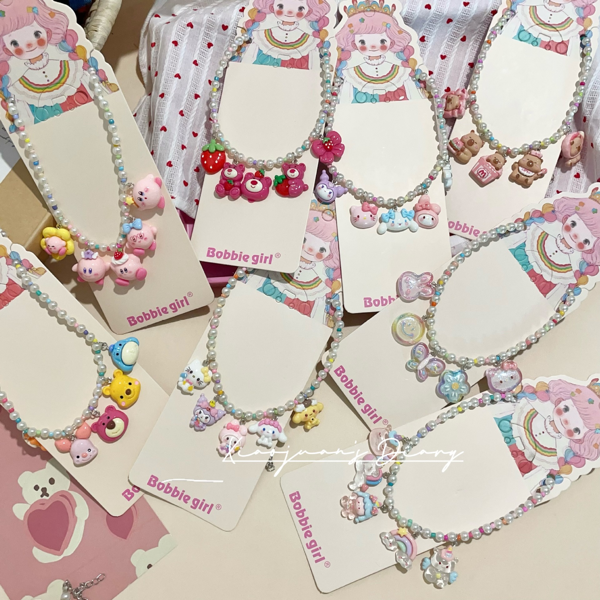Cute Cartoon Sanrio Necklace Sweet Girl Flower Strawberry Beaded Little Princess Accessories Children's Necklace Jewelry