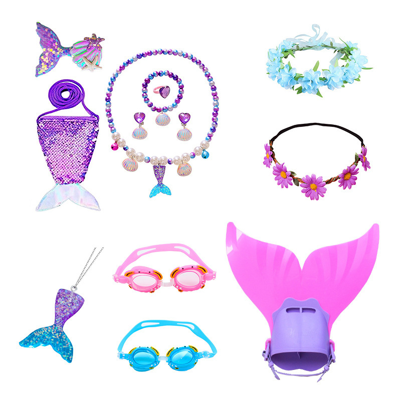 Cross-Border Export Kidsren's Mermaid Tail Girls Pearl Necklace Bracelet Ring Earrings Set Girl Baby Accessories