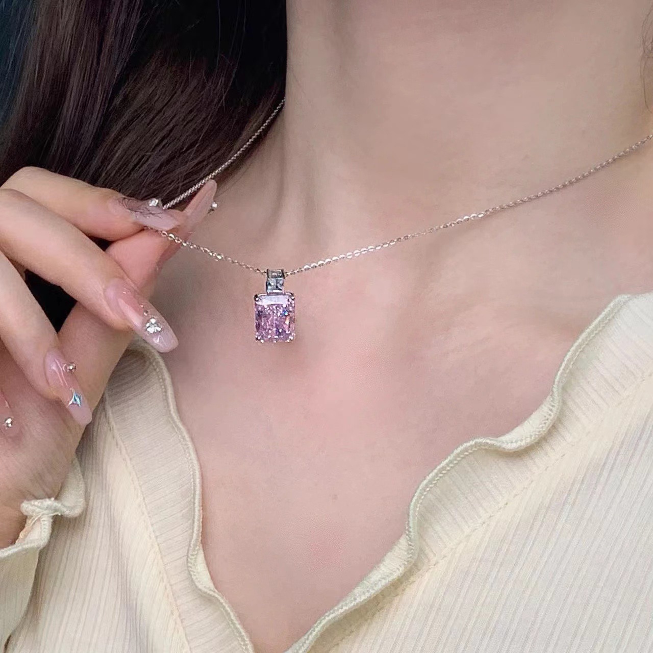 pink diamond perfume bottle necklace female ins niche design light luxury simple versatile girl heart pink clavicle chain