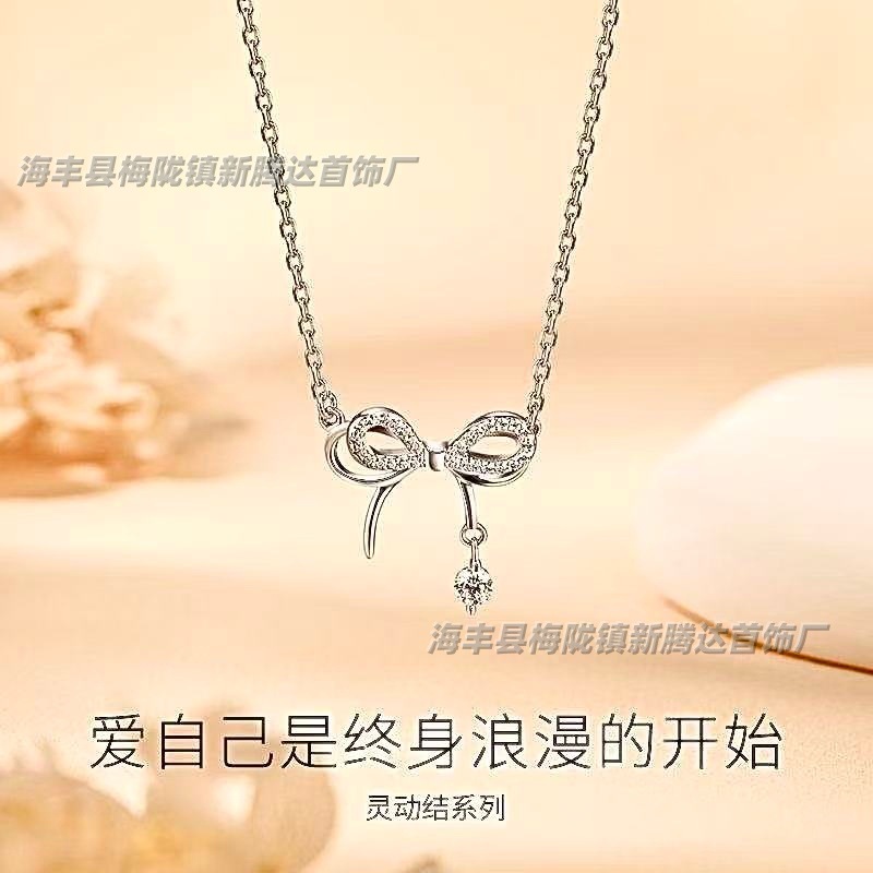 Bow Necklace for Women, Butterfly Dream Pendant, Girly Heart, Fresh Diamond-Encrusted Niche Design, Versatile Clavicle Chain