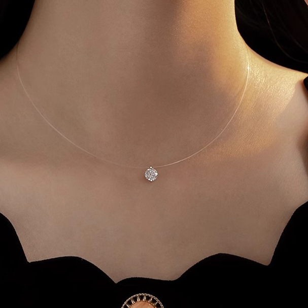 Simple Geometric Water Drop Necklace for Girls, Exquisite Sparkling Diamond Niche Pendant, Short Clavicle Chain