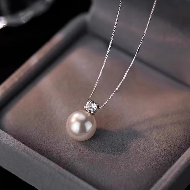 Imitation Pearl Necklace Exquisite Light Luxury Single Zirconium Girls French Ins Cold Style Elegant Clavicle Chain New Wholesale Trendy