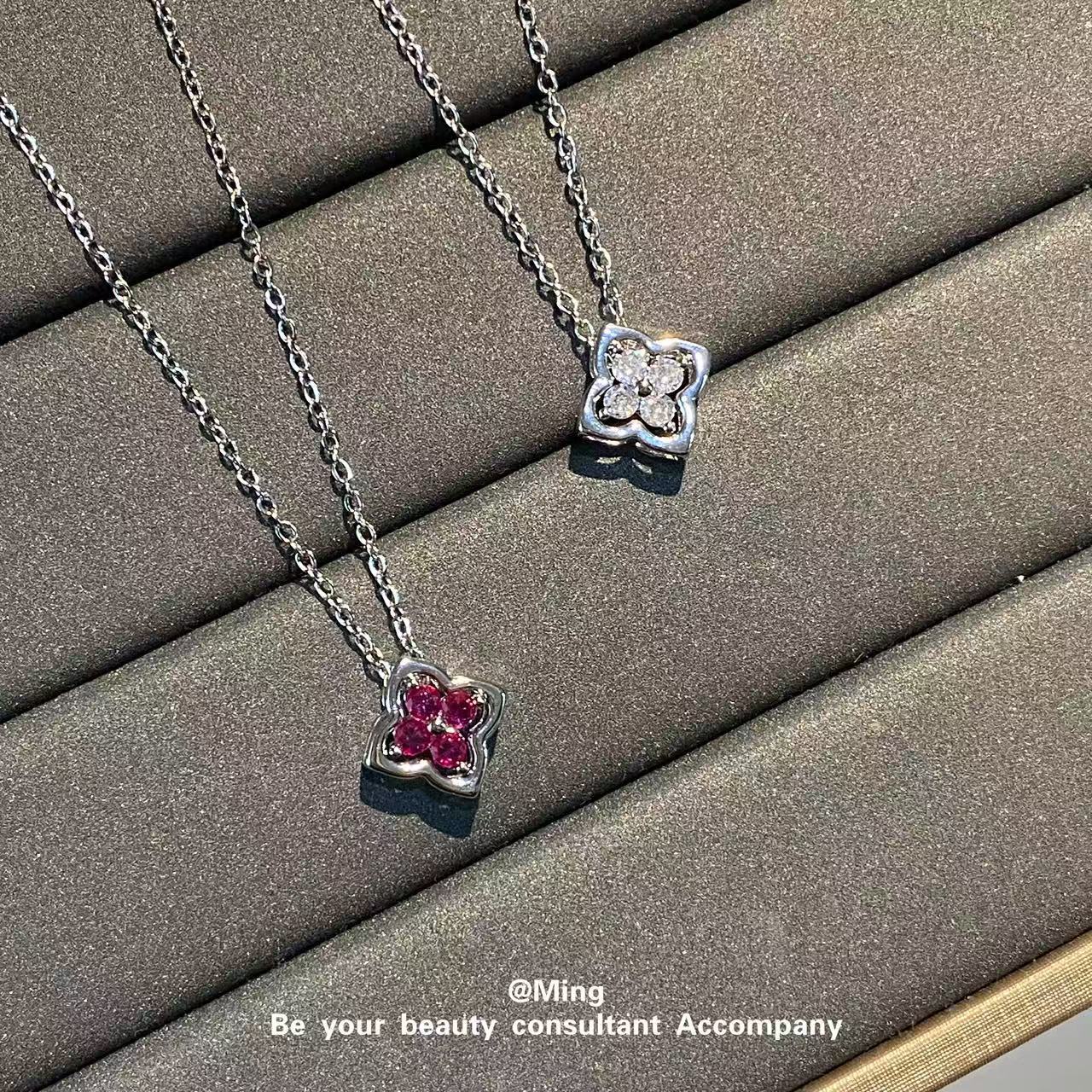 Fashion Retro Micro-Paved Zircon Four-Leaf Clover Pendant Necklace for Girls, Light Luxury Niche High-End Detachable Clavicle Chain