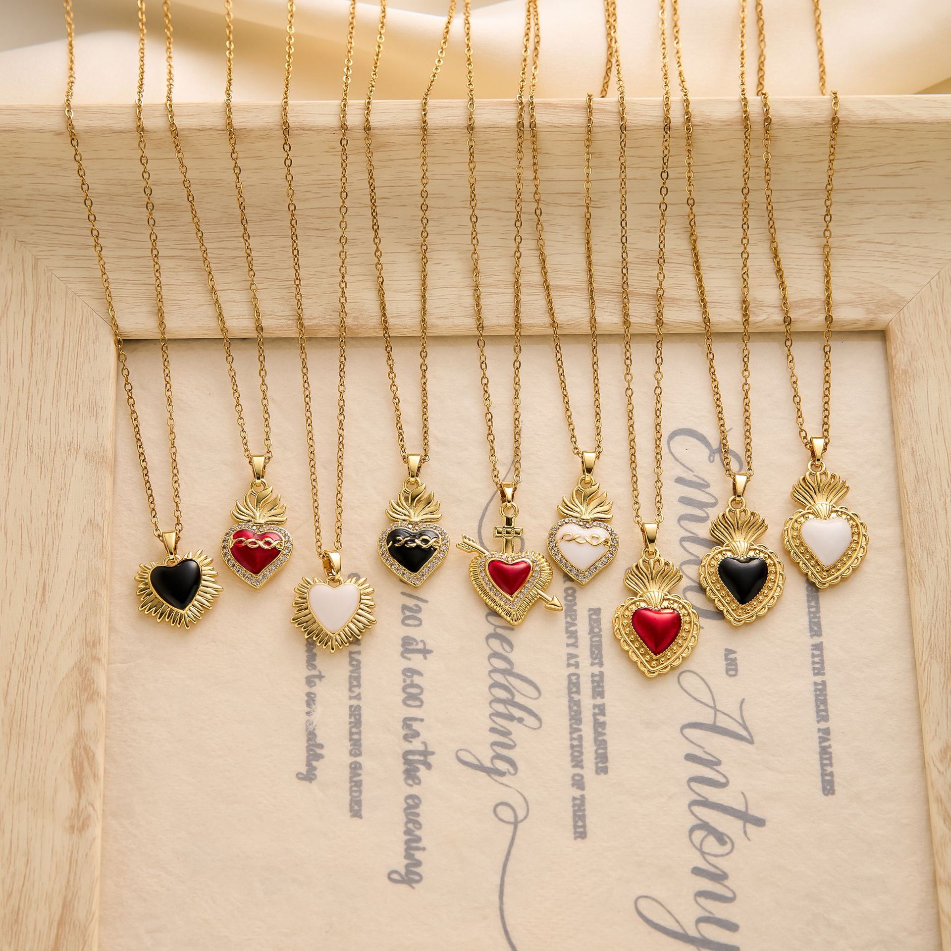 Cross-Border Hot-Selling Retro Style Thorn Love Necklace Women's Gemstone Peach Heart Copper Pendant Niche High-End Clavicle Chain