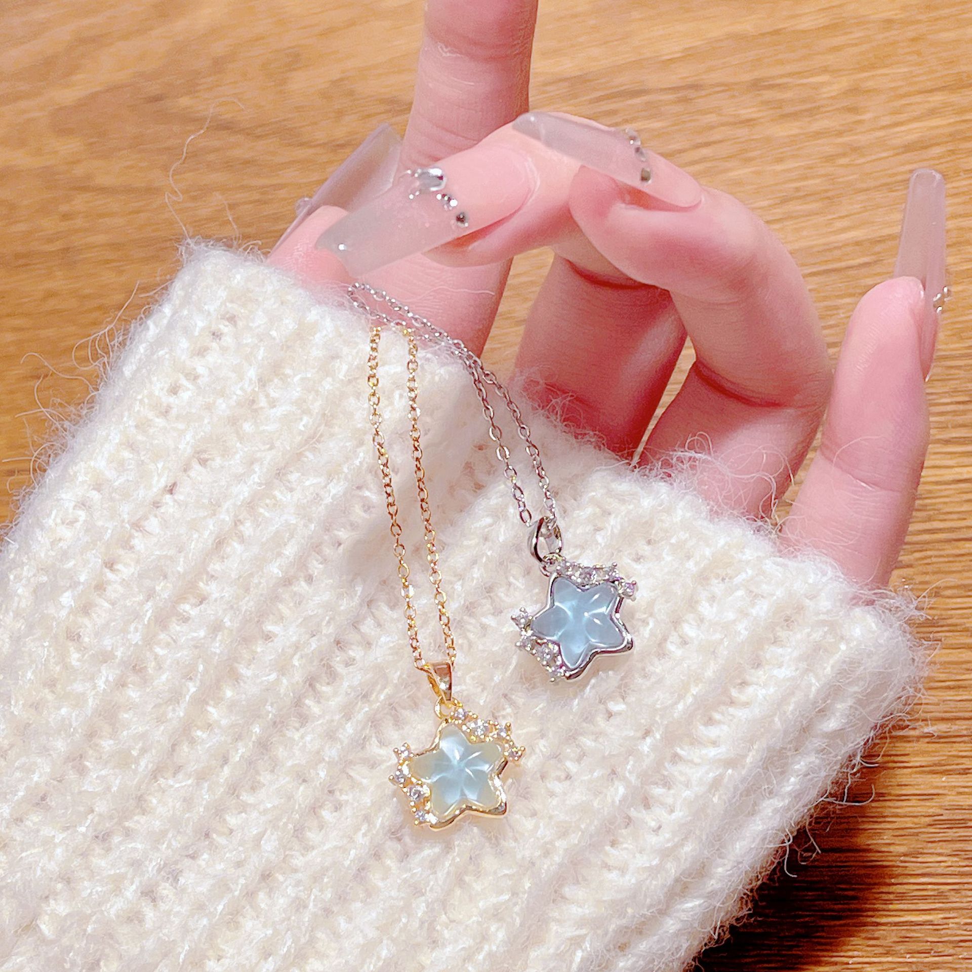 Fresh and Sweet Dreamy Star Micro-inlaid Necklace Women's Light Luxury Niche Design Sense Exquisite Lady Style Clavicle Chain