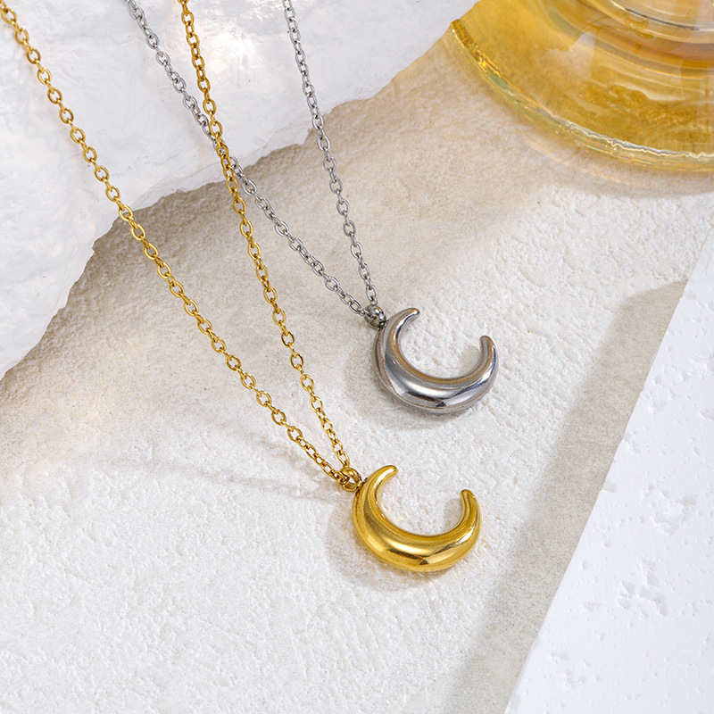Stainless Steel Moon Necklace for Girls, Accessible Luxury Niche Design, Simple and Fashionable Elegant, 18K Gold Crescent Moon Clavicle Chain