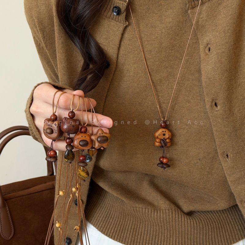 Cute Things Are Coming~ Wooden Bear Star Necklace for Women in Autumn and Winter, Cute Long Sweater Chain, Niche Design Accessories