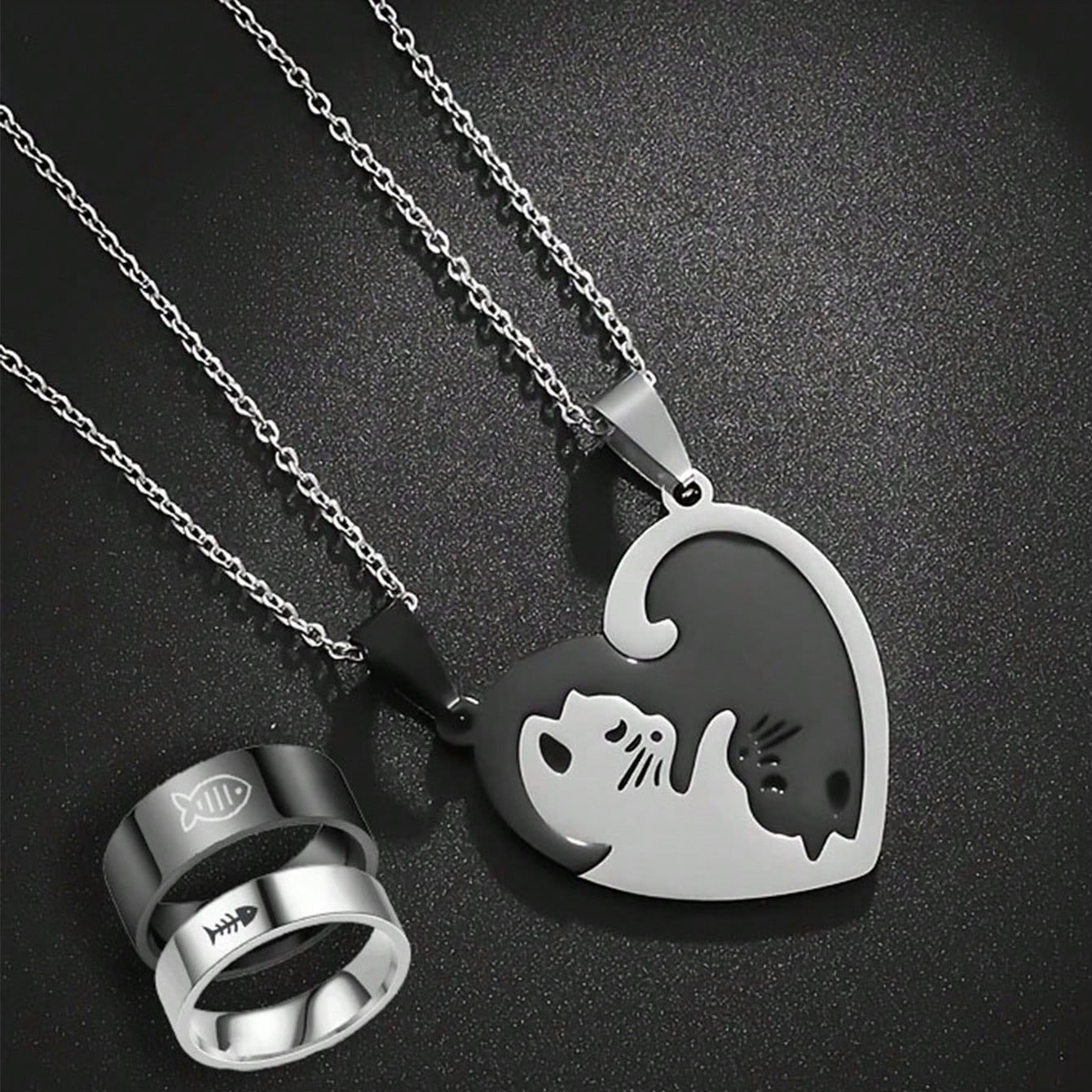 Couple Necklace with Cat Design for Male and Female Students, Simple and Cute Korean Style Titanium Steel Pendant for Women